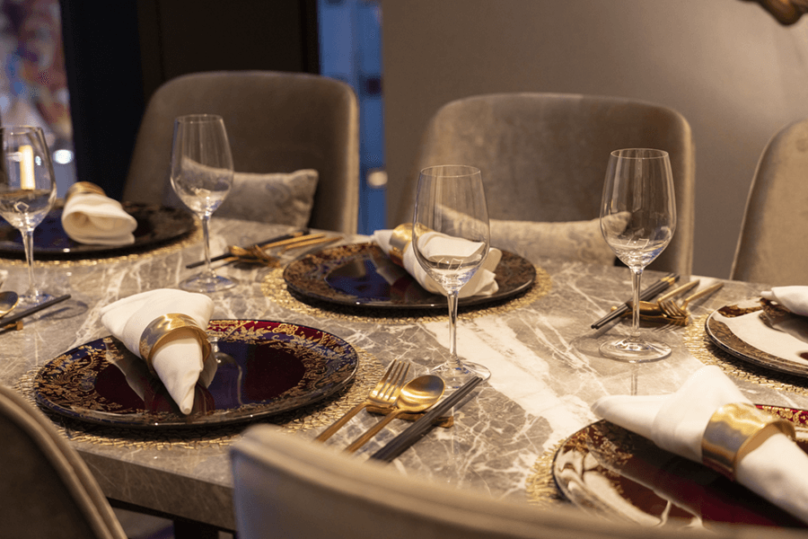 The spacious restaurant with 82 seats and 8 private rooms can be used for special occasions and important dinners. We welcome you to an elegant and beautiful space that will make you forget the hustle and bustle of the city.